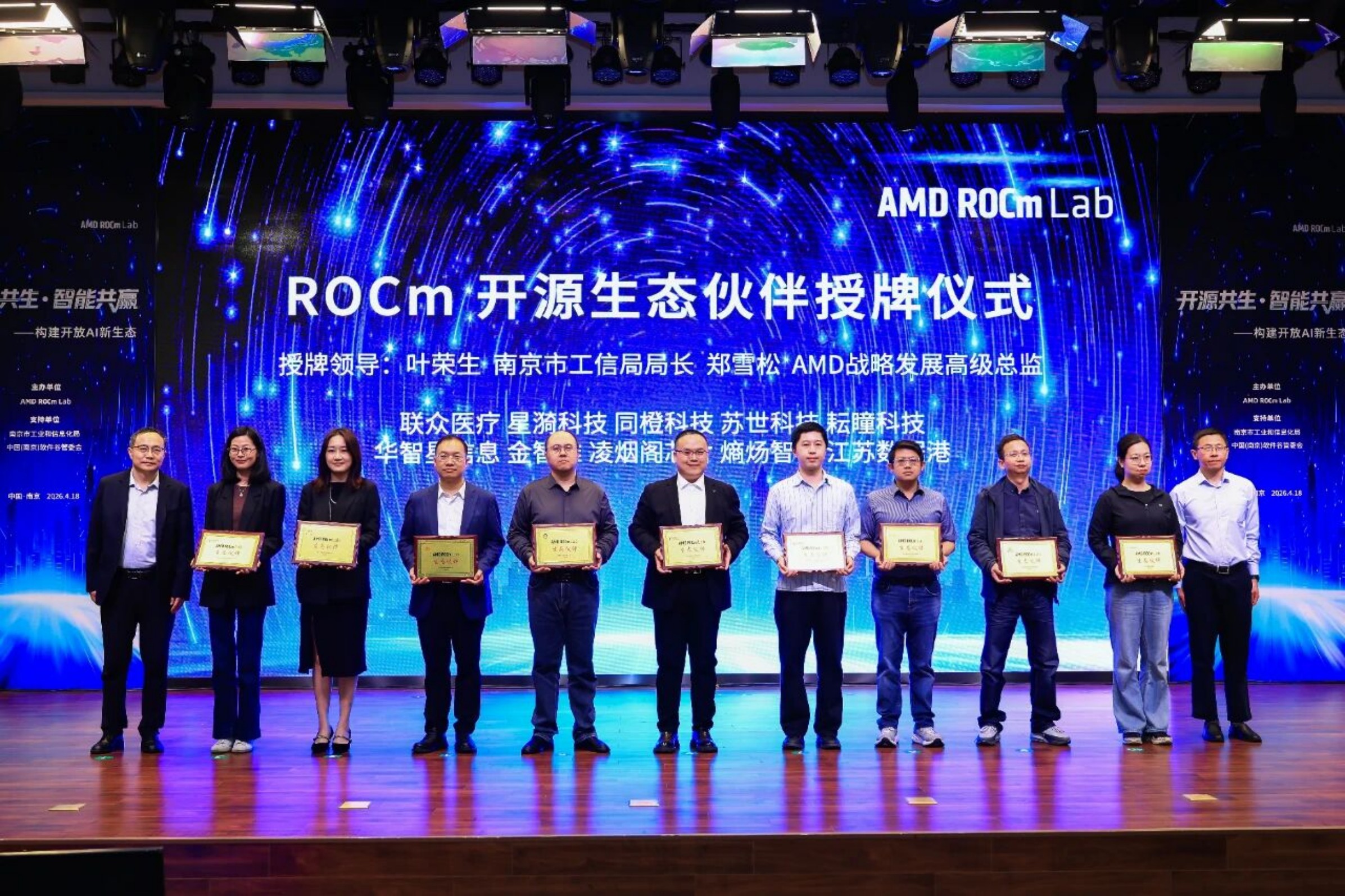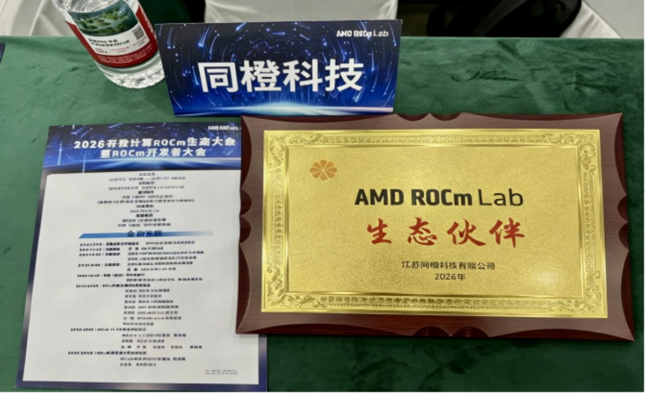 近日,同橙科创集团旗下子公司——同橙科技,在以“开源共生·智能共赢”为主题的2026开放计算ROCm生态大会上,从AMD及政府领导手中接受了“AMD ROCm Lab开源生态伙伴”的授牌。 这不仅是一份认可,更是一份携手共建开放AI新生态的郑重承诺。同橙科技正与AMD一道,从开源软件走向开放标准,汇聚生态力量,共话智能未来。