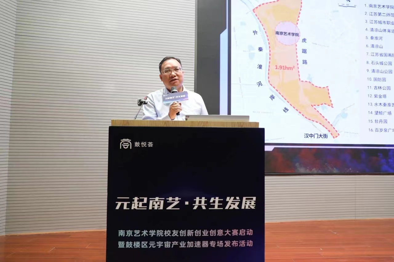 2023年7月12日,“元起南艺·共生发展”南京艺术学院校友创新创业创意大赛启动暨鼓楼区元宇宙产业加速器专场发布活动在南京艺术学院美术馆举行。